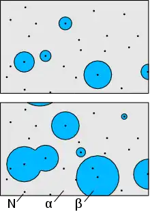 - Пуассоновский закон зарождения центров: центры новой фазы возникают в среде случайно и равномерно с некоторой интенсивностью на единицу объёма несконденсировавшейся среды в единицу времени, зависящей в общем случае от времени.
