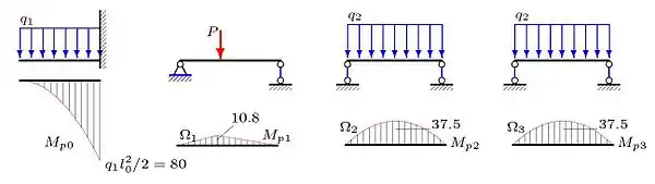 Здесь — площадь эпюры моментов i-й статически определимой балки, — расстояние от центра тяжести i-й эпюры до левого конца балки, — расстояние от центра тяжести i-й эпюры до правого конца балки, — длина i-й балки.