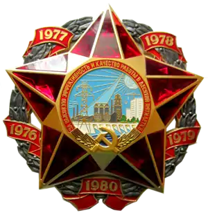 - Орден Ленина (01.01.1971) — за большие успехи в выполнении заданий пятилетнего плана по освоению производства сложного оборудования для химической промышленности