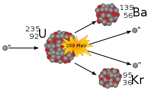 В 1938 году немецкие физики Отто Ган и Фриц Штрассман открыли непредсказанное явление, происходящее с ядром урана при облучении его нейтронами. Захватывая свободный нейтрон, ядро изотопа урана 235U делится, при этом выделяется (в расчёте на одно ядро урана) достаточно большая энергия, в основном в виде кинетической энергии осколков и излучения. Позднее теория этого явления была обоснована Лизой Мейтнер и Отто Фришем и независимо от них Готтфридом фон Дросте и Зигфридом Флюгге[9]. Данное открытие явилось истоком как мирного, так и военного использования внутриатомной энергии.