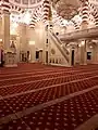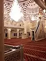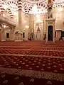 Наружные и внутренние стены основного здания отделаны мрамором-травертином, а интерьер декорирован белым мрамором. Построен мраморный резной минбар и молитвенная ниша в стене мечети — михраб, изготовленная из белого мрамора, направлена в сторону Мекки, указывая верующим направление во время молитвы[6].