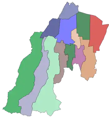 | № на карте | Муниципальное образование | Административный центр | Количество населённых пунктов | Население (чел.) | Площадь (км²) |