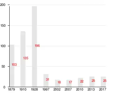 Число жителей по семейным спискам 1879 г.: 52 м. п., 51 ж. п.; по приходским сведениям 1879 г.: 47 м. п., 46 ж. п.[2]