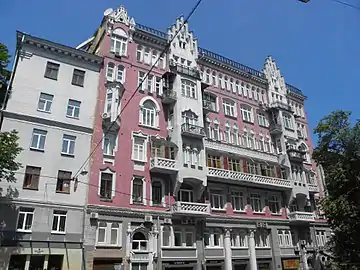 Первой улицей в новом жилом районе стала Николаевская, первыми возведенными домами — № 1, № 3 (не сохранились) и № 5[10]. В доме № 5 в 1897 году открылся отель «Континенталь», который считался на то время самым лучшим и самым современным отелем в Киеве[10]. Дом № 9 по Николаевской улице, построен в 1900—1901 годах, стал на то время самым высоким в Киеве. На той же Николаевский улице было возведено двухэтажное здание для цирка П. Крутикова на 2000 мест — самый большой на то время цирк в Европе[9]. В доме № 10 открылась женская гимназия Ольги Плетневой. В доме № 11-а в 1910-х годах действовал Киевский литературно-артистический клуб.