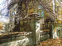 По красной линии Студёной улицы расположена кирпичная ограда с кованой решёткой, примыкающая к углу главного дома. В наши дни утрачено кованое заполнение калитки входа, заменённое на створки металлических ворот, контрастирующих с общим обликом усадьбы[1].