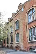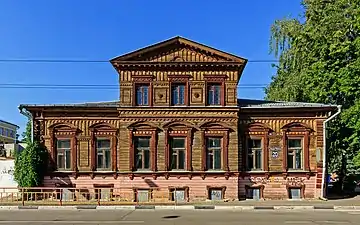 Жилой двухэтажный дом (флигель) на полуподвале, с обращённым на улицу Семашко главным фасадом в пять окон получил весьма оригинальные окна обоих этажей, объединённые овальным врезом в кладку, внизу заканчивающимся поясом поребрика (эти элементы были внесены в результате изучения древнерусской архитектуры). Полукруглые окна цокольного этажа были обведены рельефным рустованным наличником. По верху на углах здание получило причудливые валюты, а между ними — кованые ограждения кровли[3].