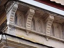 | Элементы западного фасада. | Окна западного фасада. | Элементы северного фасада. | Одна из пристроек на территории усадьбы. |