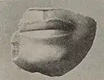 Там же были найдены ещё в 1907 году Людвигом Борхардтом маленькие фрагменты статуй из известняка, гранита и красного песчаника. Кусок алебастра, изображающий рот и подбородок фараона, первоначально принадлежащий статуи почти в натуральную величину, находится сегодня в Египетском музее в Берлине (инв. № 19774).