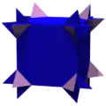 - Антиусечение обратно мелкому усечению. В результате получается многогранник, который похож на исходный, но имеет части, висящие на углах, вместо отрезания углов.
