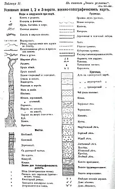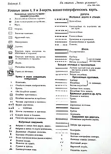 - «Условные знаки для употребления на Топографических, Географических и Квартирных Картах и Военных планах», утверждённые начальником Главного штаба, в июне 1822 года.