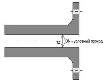 Под условным проходом элементов трубопровода (труб, арматуры и соединительных частей) понимают внутренний диаметр труб округленный вверх или вниз до значений стандартного ряда в миллиметрах. Его обозначают буквами DN (Ду в прошлом) с добавлением величины в миллиметрах.