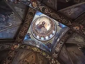 На внутреннем пространстве купола изображён «Христос Пантократор» с херувимами и серафимами (закончен в 2007 году). Под барабаном — четыре композиции: «Рождество Иисуса Христа», «Крещение Господне», «Сошествие во ад» и «Вознесение Господне». На парусах находятся образа четырёх Евангелистов. Главной темой центрального алтаря является Успение Пресвятой Богородицы, северного — Архангелы и русские святые, южного — Спас Эммануил. На межалтарных стенах находятся изображения «Распятие на Кресте» и «Снятие со Креста», на хорах — святых Киево-Печерского патерика.