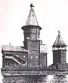 Рядом с Успенской церковью стояли ещё два деревянных здания, которые исчезли в советское время, — зимняя церковь Рождества Богородицы (1857) и шатровая колокольня (XVIII век)[9].