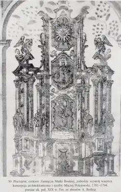 Намерение оплатить возведение нового храма Потоцкий высказал ещё в 1761 году, но архитекторы, с которыми проводились предварительные консультации, предлагали разные решения, и это оттягивало начало. Состояние сооружений монастыря требовало реконструкции, поэтому Потоцкий завязал тесные отношения с о. Ипатием Белинским, который был в то время одним из архитекторов Успенского собора, и с помощью которого укрепил здание после обвала. Позже именно пожертвования Потоцкого позволили придать храму современный вид. После многочисленных совещаний по перестройке монастыря был принят проект Яна Готфрида Гофмана.