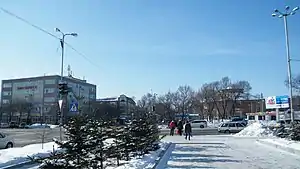 Уссурийск, перекрёсток ул. Чичерина и Краснознамённая, справа — здание цирка.
