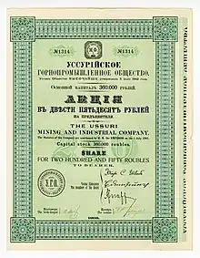 Для продолжения и развития принадлежащего «Уссурийскому горнопромышленному товариществу на вере «Старцев и Ко » предприятия в Приморской области по добыче каменного угля, производства из него всякого рода продуктов и торговле каменным углем и получаемыми из него продуктами, учреждается акционерное Общество, под наименованием: «Уссурийское горнопромышленное Общество».