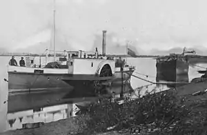 ![]() Пароход Товарищества Амурского пароходства («Уссури» или «Сунгача»). Фрагмент снимка В. В. Ланина, 1875 г. |
