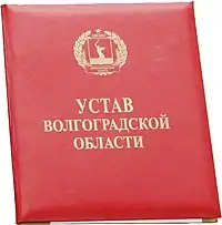 - преамбулы «Волгоградская областная Дума, сознавая свою историческую ответственность за государственную целостность и процветание России, признавая необходимость закрепления правового статуса области как равноправного субъекта Российской Федерации и создания правовой основы для её всестороннего развития, руководствуясь Конституцией Российской Федерации, принимает настоящий Устав (Основной закон) Волгоградской области»