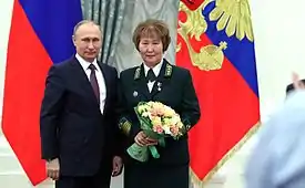 Указом Президента Российской Федерации № 182 от 25 апреля 2017 года ей было присвоено звание Героя Труда Российской Федерации за особые трудовые заслуги перед государством и народом[6].
