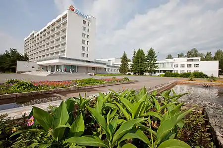 - Лечебно-диагностическая база: бальнеолечебница; питьевой бювет; наземная спелеоклиматическая палата, курортная поликлиника;