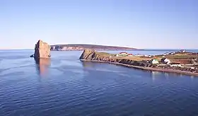 Деревня Персе (справа), утес Персе (слева), остров Бонавантюр (вдали).
