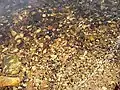 Верхнеуфалейский пруд, чёрные частицы шлака на дне