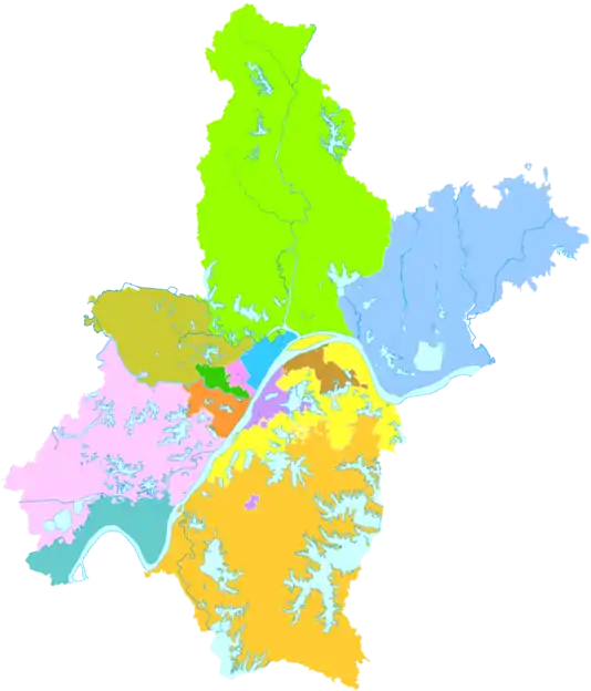 Город субпровинциального значения Ухань делится на 13 районов: