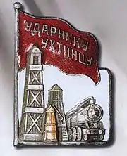 - Нагрудный знак «Ударнику-ухтинцу».