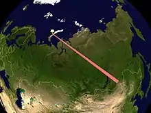 Траектория полёта ракеты во время учения «Тюльпан».