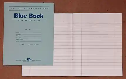 В США за ученическими тетрадями закрепилось название «composition book» — тетрадь для творчества. В литературе можно встретить употребление «version book». Традиционный размер 93⁄4 дюймов (247,6500000 мм) x 71⁄2 дюймов (190,5000000 мм) или 81⁄2 дюймов (215,9000000 мм) x 67⁄8 дюймов (174,62500000 мм) с 20, 40, 80 или 100 прошитыми листами в линию или клетку. Обратная сторона обложки обычно используется для размещения расписания. Для сдачи экзаменов в колледже иногда используются так называемые голубые книжки — тонкие и небольшого формата, близкие русским школьным тетрадям.