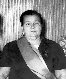 В 1970 году досрочно выполнила личные социалистические обязательства и производственные задания Восьмой пятилетки (1966—1970). Указом Президиума Верховного Совета СССР от 5 апреля 1971 года «за выдающиеся успехи в досрочном выполнении заданий пятилетнего плана и большой творческий вклад в развитие производства тканей, трикотажа, обуви, швейных изделий и другой продукции легкой промышленности» удостоена звания Героя Социалистического Труда с вручением ордена Ленина и золотой медали «Серп и Молот»[1].