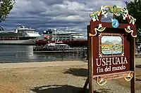 Ушуа́я (исп. Ushuaia, также Ушуайя, Усуая или Усвайя)[1] — город и порт на юге Аргентины. Находится на острове Огненная Земля. Административный центр провинции Огненная Земля и одноимённого департамента. Ушуайя на языке некогда живших тут индейцев племени ямана означает «Залив, смотрящий на запад». Является самым южным городом Земли.