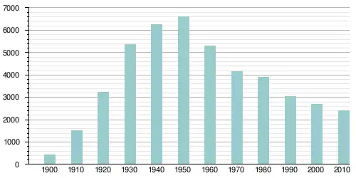 Население города по возрастному диапазону распределилось следующим образом: 15,5 % — жители младше 18 лет, 2,6 % — между 18 и 21 годами, 64,1 % — от 21 до 65 лет и 17,8 % — в возрасте 65 лет и старше. Средний возраст населения — 44 года. На каждые 100 женщин приходилось 114,4 мужчин, при этом на 100 совершеннолетних женщин приходилось уже 119,8 мужчин сопоставимого возраста[3].