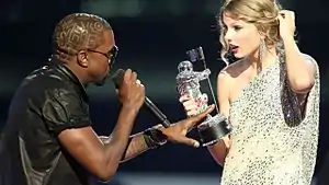 В 2009 году произошёл один из наиболее известных скандалов, связанных с Канье Уэстом. В сентябре, на церемонии награждения MTV Video Music Awards 2009 года, Тейлор Свифт получила награду за лучшее женское видео за клип на композицию «You Belong with Me». В момент вручения награды Уэст вышел на сцену, отобрал микрофон у Свифт и объявил, что «у Бейонсе был один из лучших клипов всех времён!», имея в виду клип на «Single Ladies (Put a Ring on It)»[141]. Данная выходка была негативно воспринята как фанатами, так и другими музыкантами[142]. Некоторые даже относят эту ситуацию к одной из теорий заговора в мире хип-хопа. В доказательство данной точки зрения приводят то, что как только рэпер выскочил на сцену на экране сразу же появилось лицо Beyonce. Это было сделано ещё до того, как рэпер что-либо сказал, что и предоставило возможность телезрителям увидеть реакцию певицы на его слова.