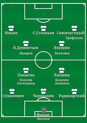 | «Динамо» Москва: Пемпер - Радикорский, Чернышев, Станкевич - Лапшин, Елисеев - Семичастный, Якушин |