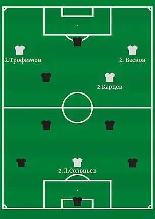 | «Динамо» Москва: Кочетов - Радикорский, Л.Соловьев, Станкевич «Динамо - II»: Бычков - Антоневич, Никульцев, Шевцов - Поставнин, Елисеев |