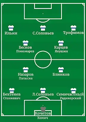 | «Динамо» Москва: Кочетов - Чернышев «Динамо - II»: Стеценко - Антоневич, Никульцев, Шевцов - Поставнин, Елисеев |