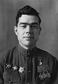 - Медаль «Золотая Звезда» (звание Героя Советского Союза присвоено 10.4.1945),