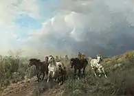 - Табун диких лошадей, ведомых крестьянином