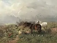 пейзаж с двумя лошадьми и охотничьей собакой
