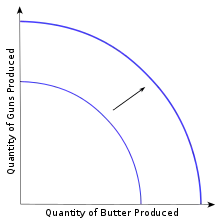Согласно К. Р. Макконнеллу и С. Л. Брю, источниками экономического роста являются факторы предложения (количество и качество природных и трудовых ресурсов, объём основного капитала и технология), факторы спроса и факторы распределения. Экономический рост обусловлен смещением вправо кривой производственных возможностей как на рисунке Экономический рост и кривая производственных возможностей за счёт факторов предложения (увеличения количества и улучшения качества ресурсов и технического прогресса)[1].