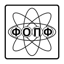 На старой эмблеме факультета была изображена планетарная модель атома с электронами — буквами, образующими сокращение «ФОПФ».