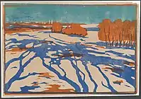 Зимний пейзаж с соснами на заходе солнца, 1927.