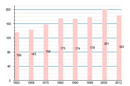 | 1962 | 1968 | 1975 | 1982 | 1990 | 1999 | 2006 | 2011 | 2012 |