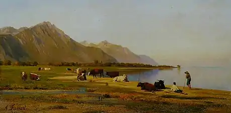 В 1854 году в Женеве состоялась его первая персональная выставка. Поселившись в Париже, выставлялся в Парижском салоне с 1857 по 1879 год. В 1857 году получил свою первую награду за картину «Le Crépuscule dans la plaine des rocailles».