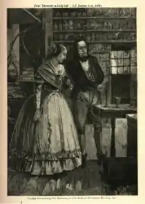 В 1821 году в жизни Фарадея произошло несколько важных событий. В июле он женился на 20-летней Саре Барнард (Sarah Barnard, 1800—1879)[комм. 1], сестре его друга. По отзывам современников и по заверениям самого Фарадея, брак был счастливым, Майкл и Сара прожили вместе 46 лет. Жили супруги на верхнем этаже Королевского института, за отсутствием собственных детей они воспитывали малолетнюю племянницу-сироту Джейн; Фарадей также постоянно заботился о своей матери Маргарет (умерла в 1838 году)[23][24]. В Институте Фарадей получил место технического смотрителя здания и лабораторий Королевского института (Superintendent of the House). Наконец, его экспериментальные исследования начали неуклонно перемещаться в область физики. Несколько значительных работ по физике, опубликованных в 1821 году, показали, что Фарадей вполне сложился как крупный учёный. Главное место среди них занимала статья об изобретении электродвигателя, с которой фактически начинается промышленная электротехника.