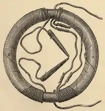 Двести три фута медной проволоки в одном куске были намотаны на большой деревянный барабан; другие двести три фута такой же проволоки были проложены в виде спирали между витками первой обмотки, причем металлический контакт был везде устранен посредством шнурка. Одна из этих спиралей была соединена с гальванометром, а другая — с хорошо заряженной батареей из ста пар пластин в четыре квадратных дюйма с двойными медными пластинками. При замыкании контакта наблюдалось внезапное, но очень слабое действие на гальванометр, и подобное же слабое действие имело место при размыкании контакта с батареей.