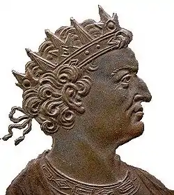 ![]() Изображение Фарамонда с бронзовой медали работы Жана Дасье. Около 1720 года. | |