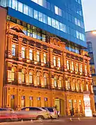 Фрагмент фасада старого здания Финляндского вокзала в Санкт-Петербурге, встроенный в новый корпус.