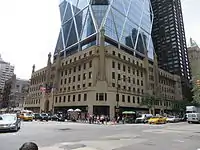 46-этажный небоскрёб Хёрст-тауэр в Нью-Йорке поднимается из фасада 6-этажной постройки